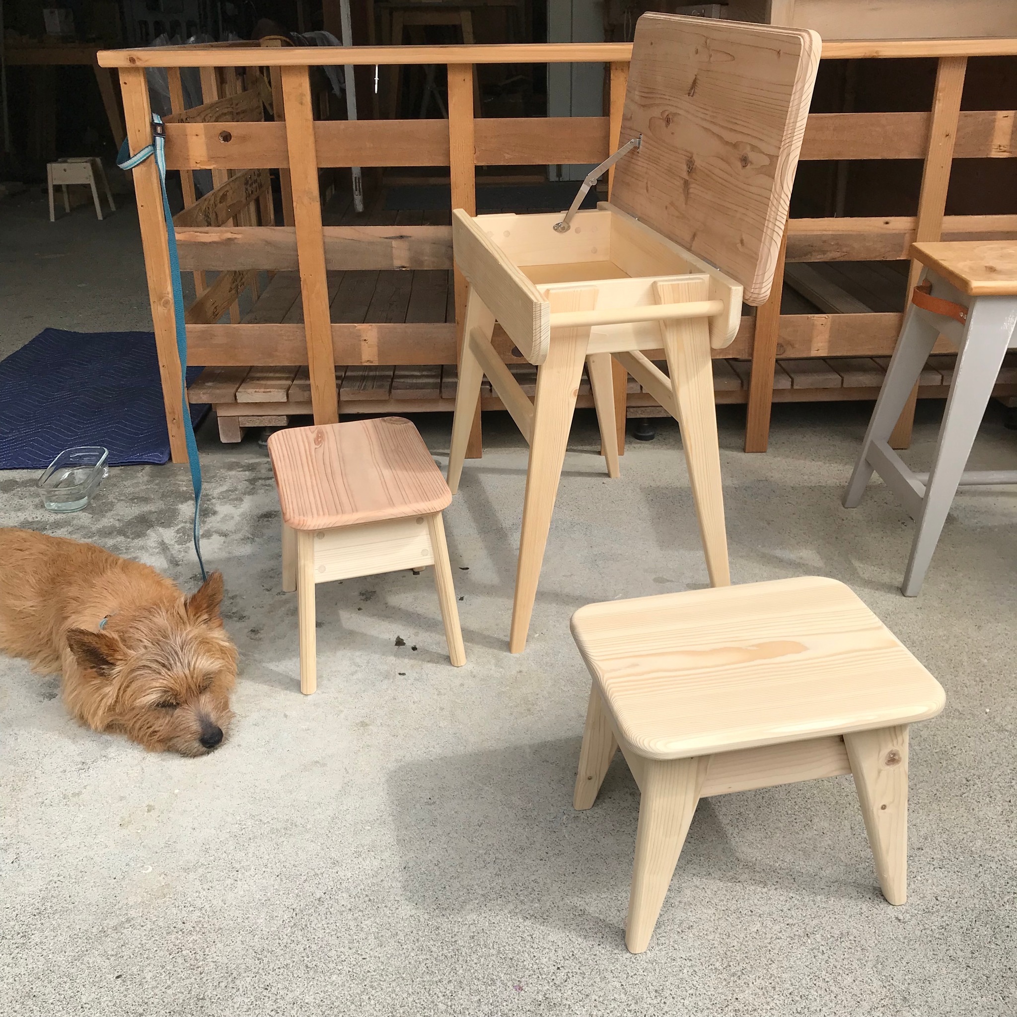 少ない台数ですがお子様向けに作ったデスク、スツールを持って行きます!